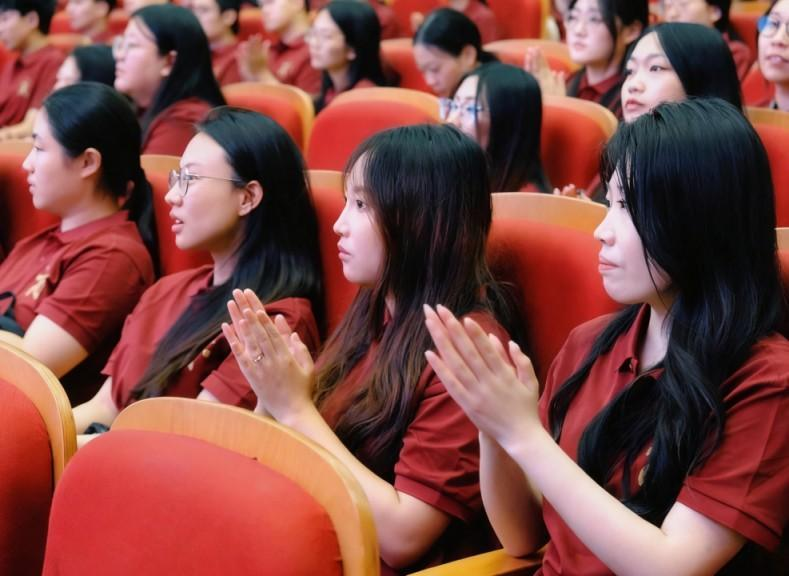 樊江涛结合校训指出商科学生必须坚守诚信与商业伦理的底线。一是求真求实,这是学术研究的灵魂,坚守诚信,这是商学人的道德底线。面对“人工智能对商业模式的冲击”“新业态企业管理及监管”“全球化逆流中的企业战略”等热点,要知道任何一个商学问题的背后,都关联着经济规律、社会伦理和人的需求。从现在起,就树立“求真务实”的学术态度,让每一次文献阅读、每一次实证分析、每一篇学术论文,都成为对“商学初心”的坚守。二是坚守商业伦理,是从商者的社会责任,樊书记从微观中观宏观阐释了商业伦理从企业内部到外部、从具体行为到社会责任的逐步扩展,反映了企业、从商者在不同层面应承担的道德责任。并结合违反商业伦理的一系列案例,强调诚信是商业活动最宝贵的资产,责任是超越利润的追求,法治是商业行为的底线思维。